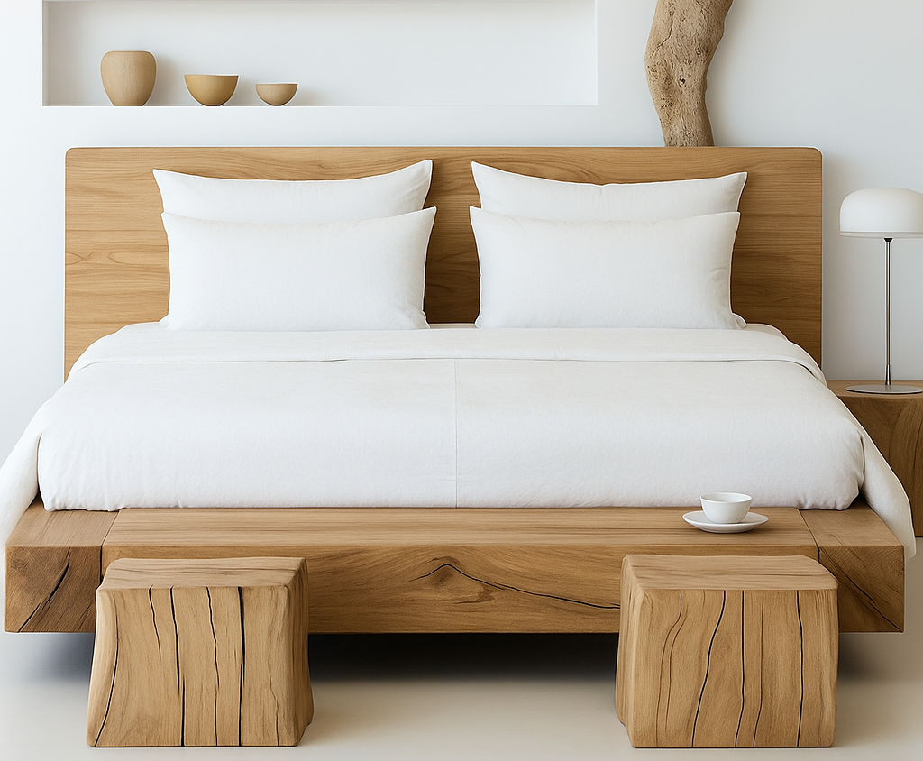 This solid wood platform bed is a masterpiece of natural elegance, crafted to highlight the organic grains and warm tones of premium timber. Designed with clean lines and a natural edge finish, it transforms your bedroom into a serene sanctuary inspired by Bali’s timeless beauty. Paired with matching benches, it offers not only comfort but also a harmonious balance of nature and modern luxury. A statement piece that turns restful nights into an experience of refined living.