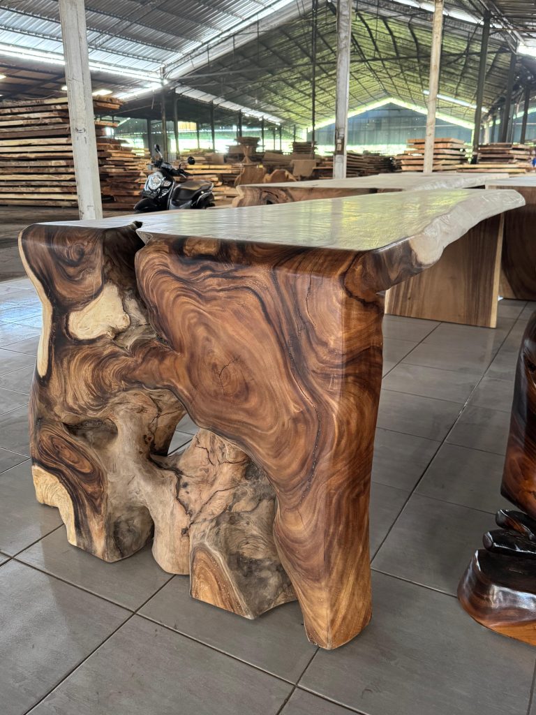 Our collection highlights the natural elegance of Indonesia’s finest hardwoods. Expertly crafted from premium solid teak, single-slab suar wood, and distinctive teak roots, each table reflects exceptional strength, authenticity, and timeless artistry. With every piece being one-of-a-kind, our designs bring refined, Bali-inspired sophistication into any interior.